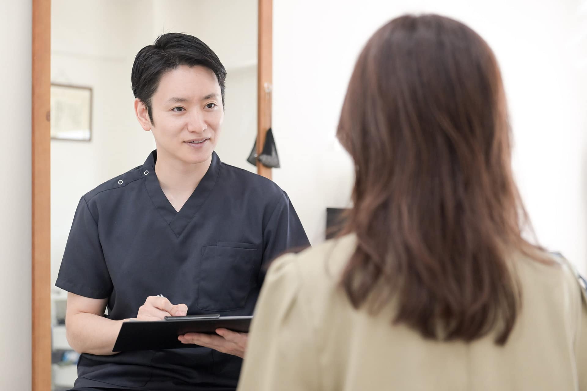 まずはお悩みや体の状態を丁寧にヒアリング。お体の不調や生活習慣についてお聞かせください。