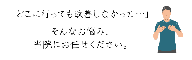 数ある治療院の中から当院のページをご覧いただき、ありがとうございます。 おそらくあなたは、これまで多くの整体や整骨院を渡り歩き、その場しのぎの対症療法に限界を感じておられるのではないでしょうか。